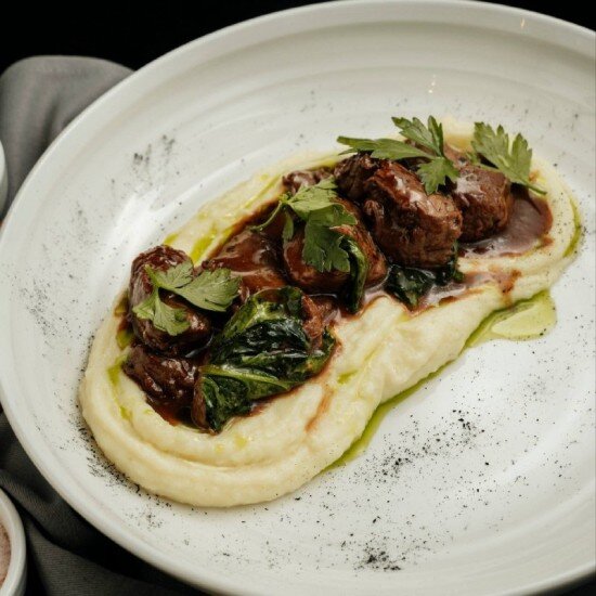 Говядина в соусе терияки с грибами и картофельным муслином (340 г)