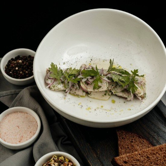 Сельдь с маринованым луком и ржаным хлебом (185 г)
