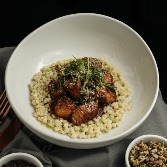 Птитим с индейкой в соусе терияки и ореховой пудрой (350 г)